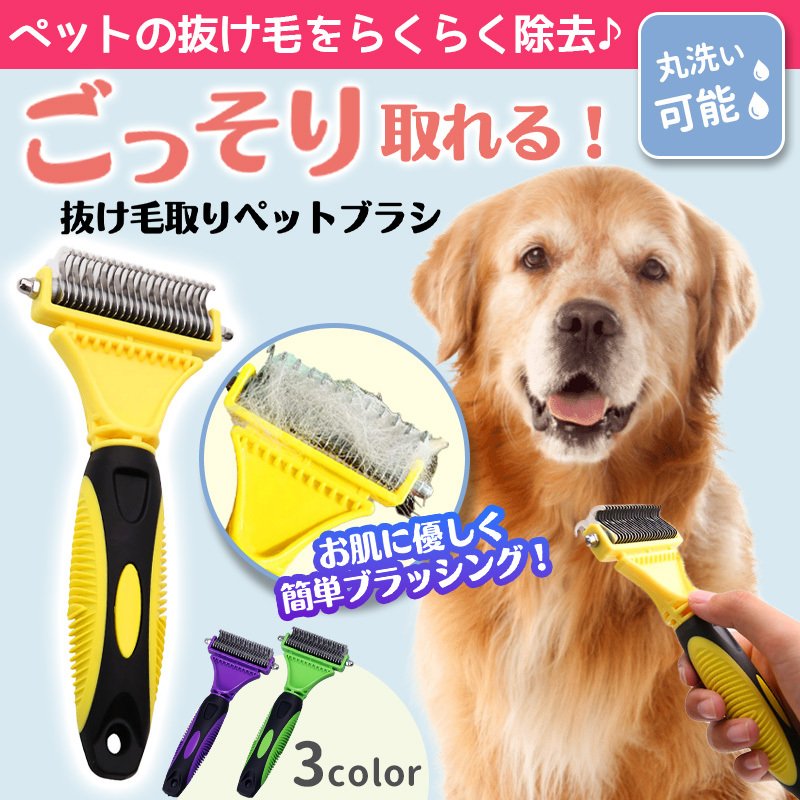 ペットブラシ 犬 抜け毛取り 毛玉取り コーム 長毛 短毛 グルーミング 両面刃 滑り止め ブラッシング