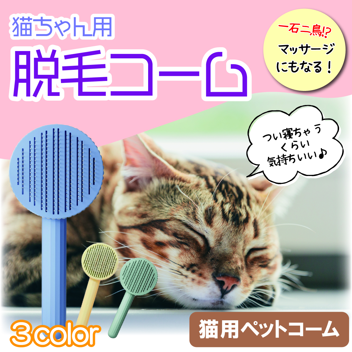 ペットブラシ 猫 コーム 抜け毛取り トリミング 毛玉取り 長毛 短毛 グルーミング もつれ毛 トリマー 痛くない イヤがらない