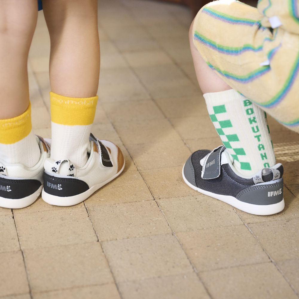 ”いきもの”をテーマに展開する「IFME PARK」シリーズが新登場!ねこちゃんの柄がキュートなワンベルトタイプスニーカー。3種類の模様からお気に入りのデザインにきっと出会える一足となっています。肉球をモチーフにした新型アウトソールを採用。屈曲性やグリップ性も向上し、運動にも使いやすいアイテムです。
