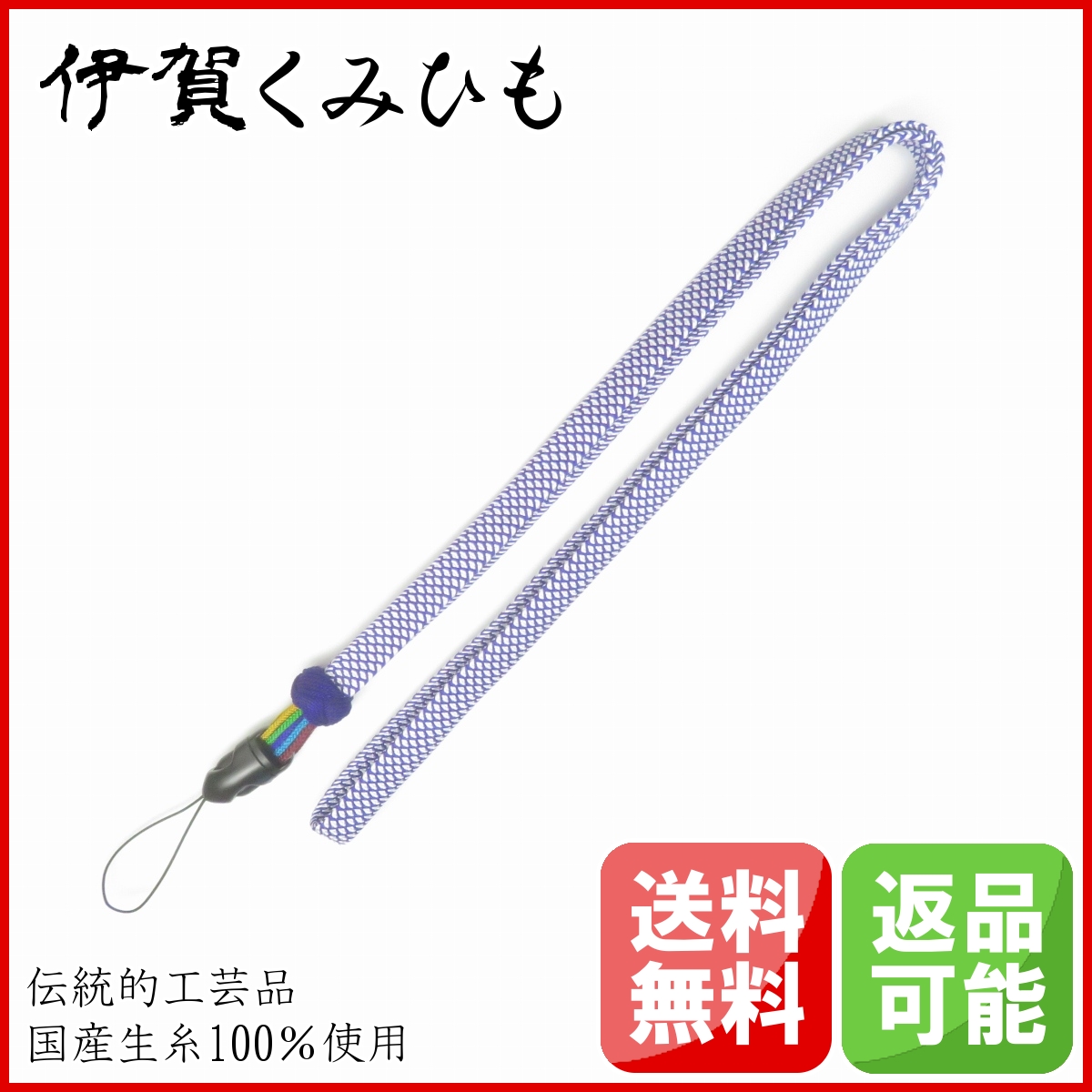 ネックストラップ (小田巻5本花、本紫色・白本紫鹿子) 絹100% スマホ 伊賀くみひも メンズ レディース おしゃれ 正絹