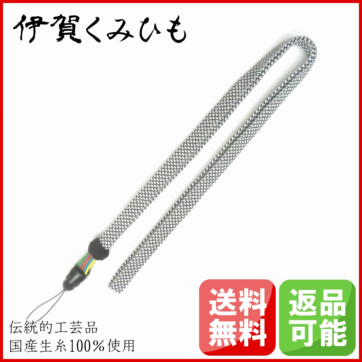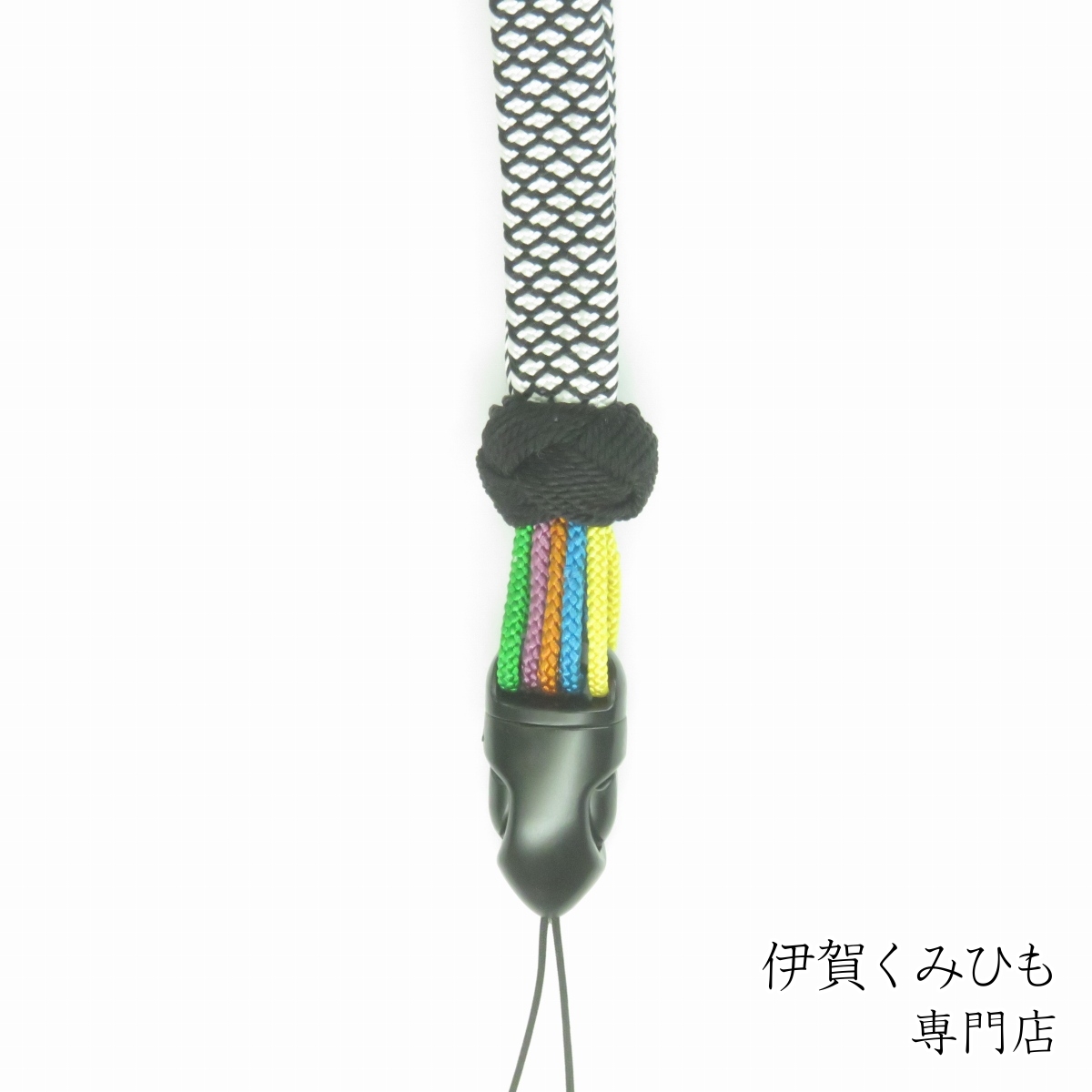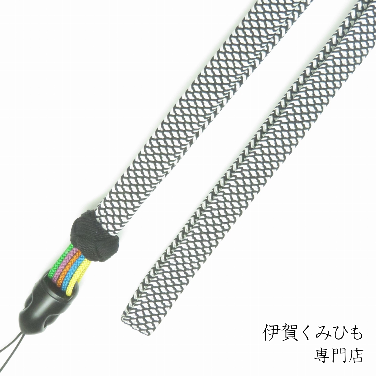 ネックストラップ小田巻5本花(黒・白黒鹿子) 絹100% スマホ 伊賀くみひも メンズ レディース おしゃれ 正絹