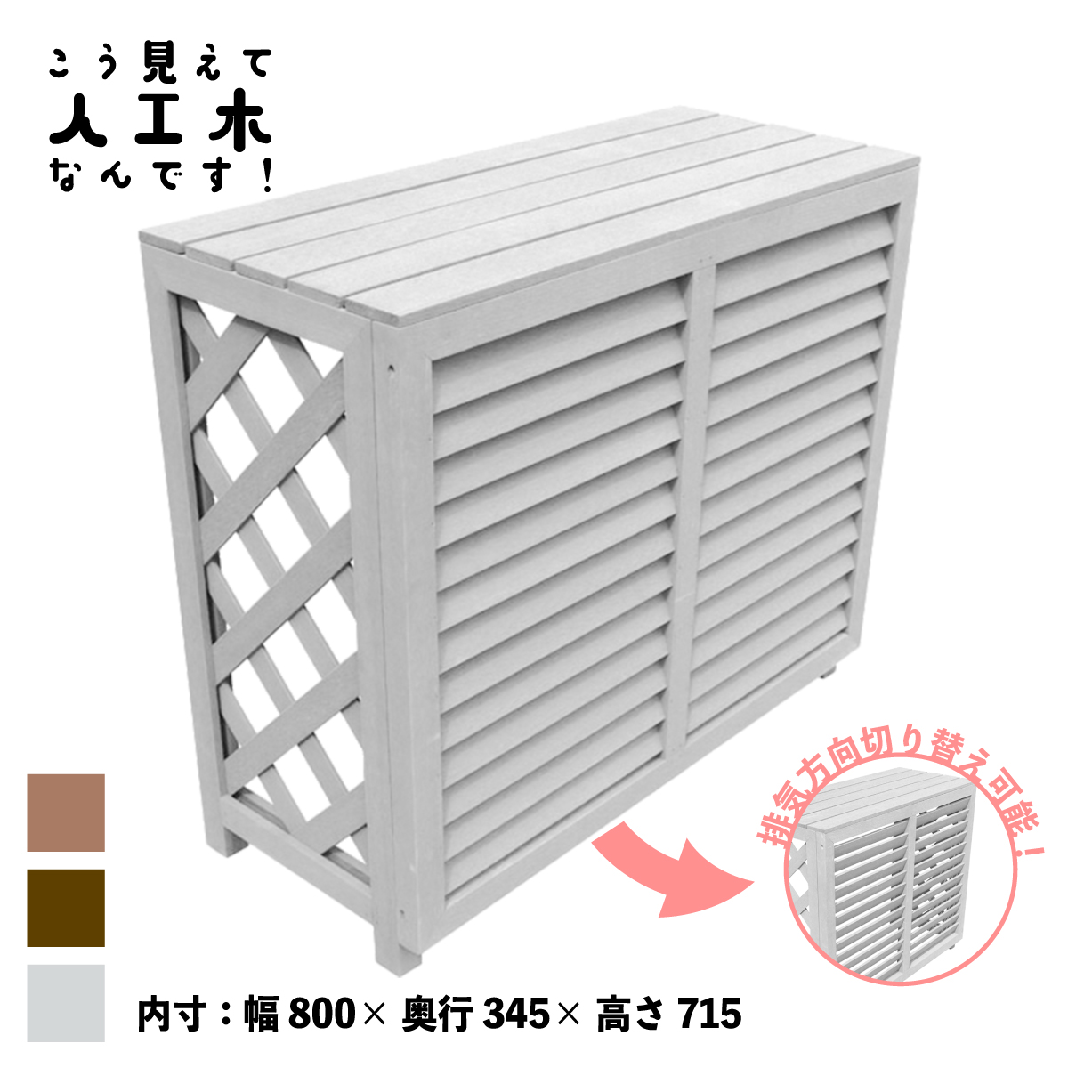 室外機カバー 880 ホワイト 人工木製 ルーバー風アイウッド 排気方向上下対応 直射日光対策 熱効率UP 景観改善 組立簡単 屋外用 エアコンカバー 爆買