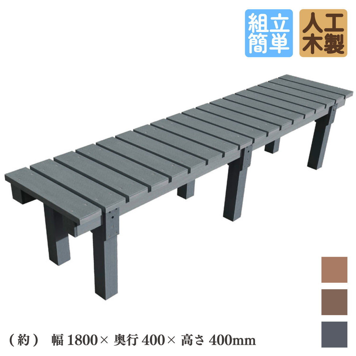 縁台 人工木製 アイウッド縁台 1840 ブラック 幅180奥行40高さ40cm 組立簡単 ベンチ ガーデンファニチャー 樹脂製 ガーデンカフェ ベランダ テラス 爆買
