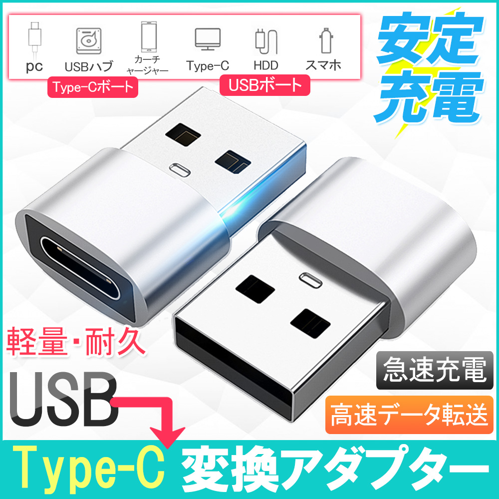 変換アダプタ USB TypeC to USB 3.0 高速データ転送 急速充電 PC/iPad/Surface/Sony Xperia/Samsung 2個セット
