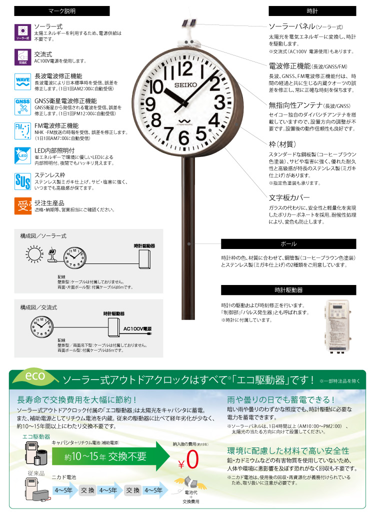 セイコー SEIKO システム ソーラー アナログ クロック アウトドア 両面ポール型 FM電波時計 専用時計駆動器 QFC-783RS 鋼板製 700 【正規】【お取り寄せ】