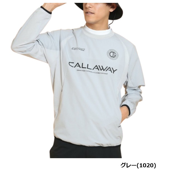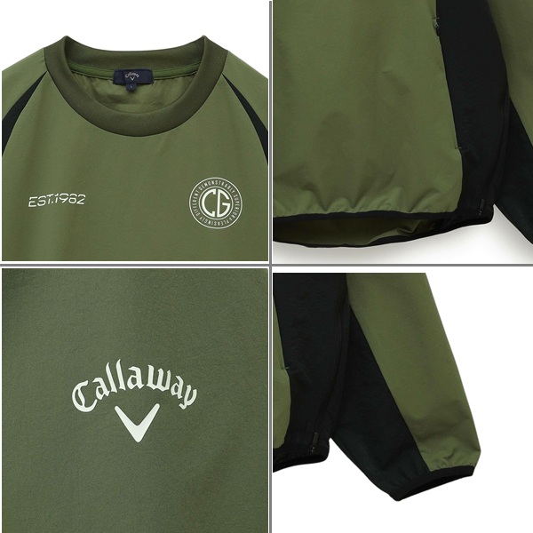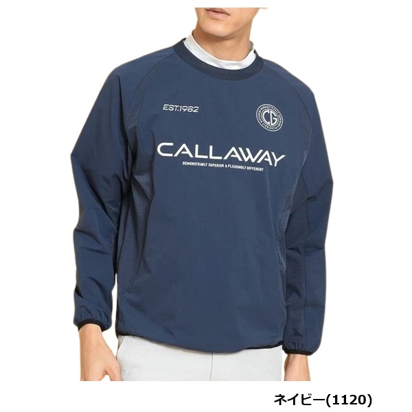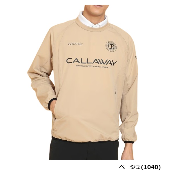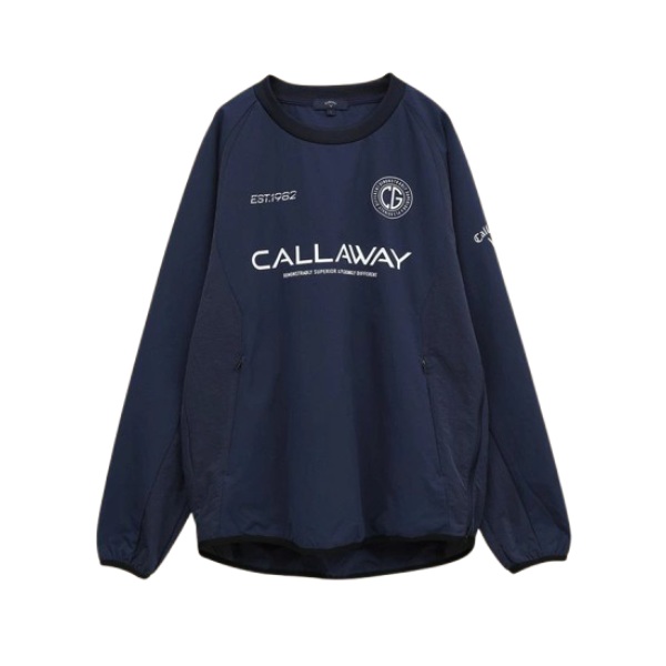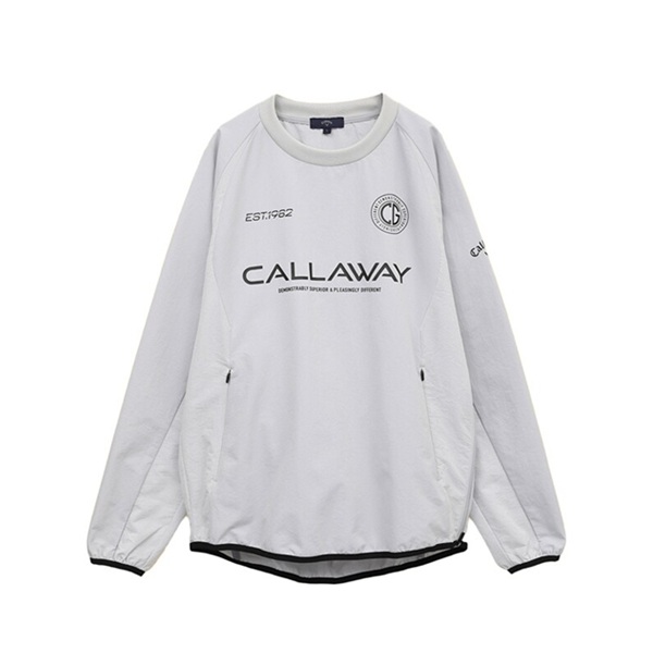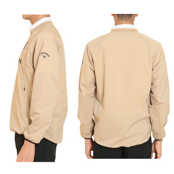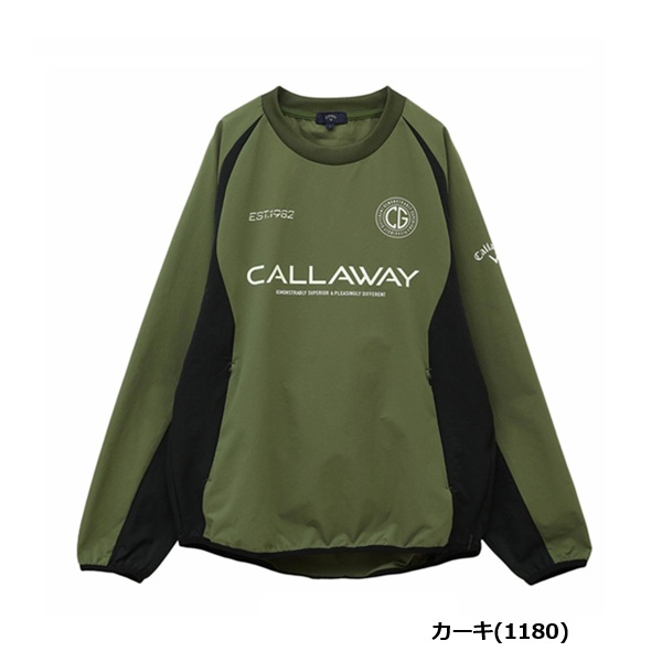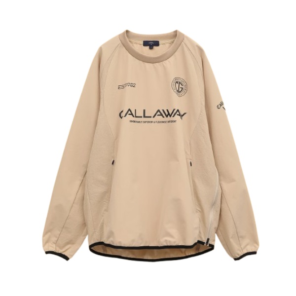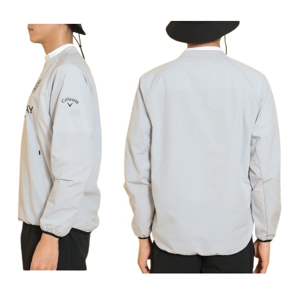 前面に複数のロゴがプリントされたプルオーバータイプのアウターです。