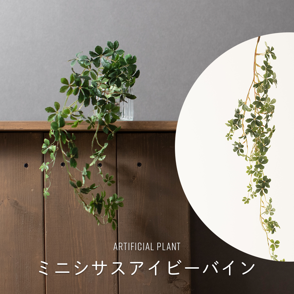 | ■商品名 ミニシサスアイビーバイン ■サイズ 長さ84cm、葉径1〜2.5cm ■材質 ポリエステル・ポリエチレン |