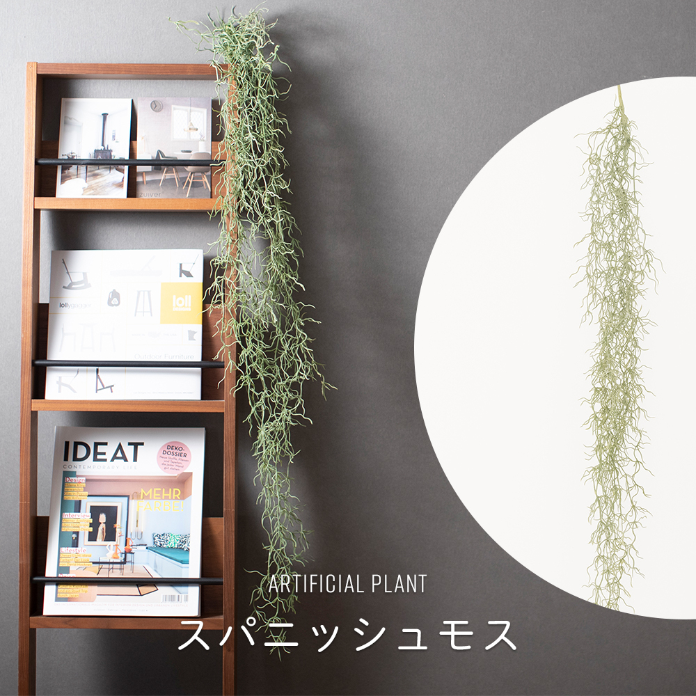 | 人気のエアプランツの一種、別名ウスネオイデス。 細い葉っぱをたくさん茂らせる姿がユニークで、天井から吊るしたり、壁に飾ったりと色々とアレンジを楽しむことができます。 お水を上げるタイミングが難しくて、室内に飾っていると枯らしてしまう人が多いスパニッシュモスですがフェイクグリーンなら枯らす心配もありません。 |