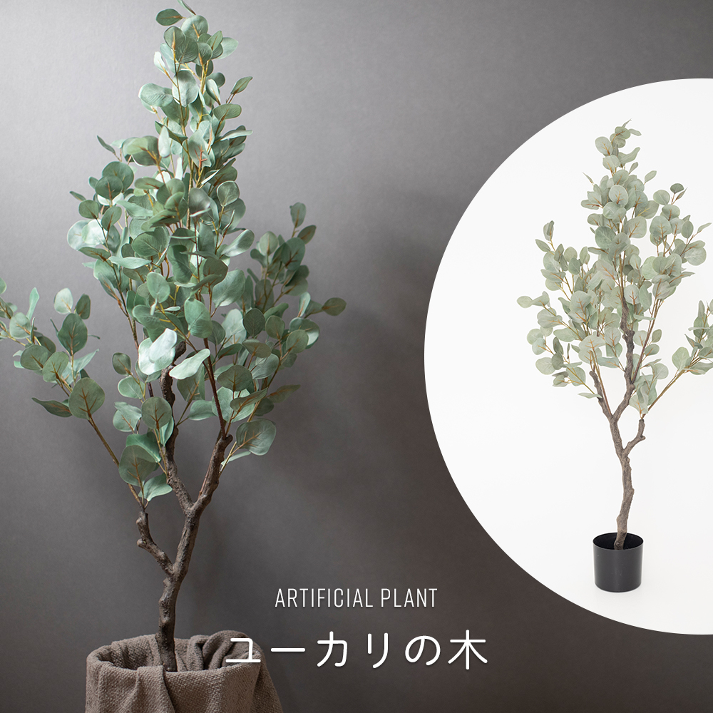 | ■商品名 ユーカリの木 ■サイズ 全体:高さ130cm、幅70cm ポット:高さ12cm、φ15 ■材質 ポリエステル・ポリエチレン |