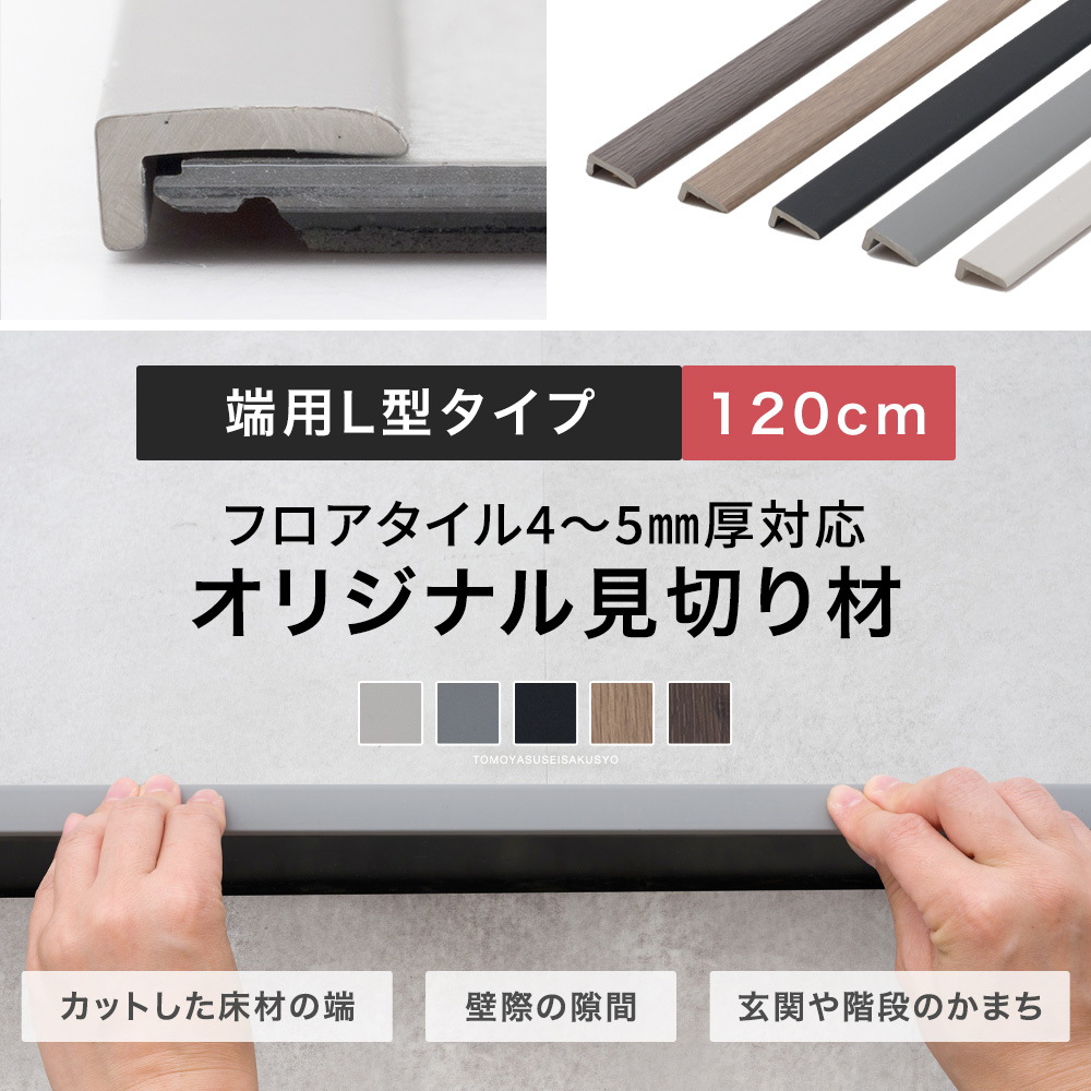 友安オリジナルフロアタイル専用の見切り材が登場!4mm〜5mm厚のフロアタイル対応で、壁際や段差、仕切りなど色んな場所に使えるL字タイプ。 うまくいかなかったカットの切り口も、伸縮を考慮して開けなければいけない隙間も隠してすっきり見せることができます。10mm以内の隙間に対応。 玄関の框(かまち)や階段の角にも使用可能です。また、サイズが合えば壁用の見切り材としても使用できます。
