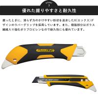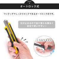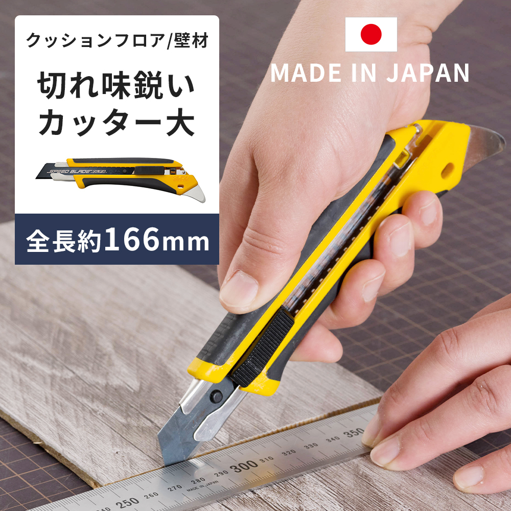 | クッションフロアシートや壁材など厚手のものをカットするのにおすすめのカッターナイフ [商品特徴] ・スピードブレードを装着 ・多用途に活躍する便利なツメ付き ・優れた握りやすさと耐久性 ・オートロック式 |