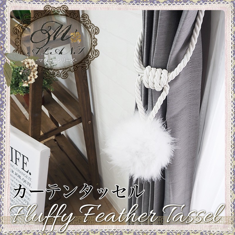 本物の羽毛の大きなポンポンがふわふわで可愛いいおしゃれなカーテンタッセル。