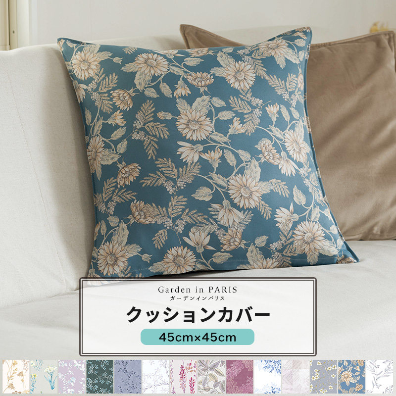 クッションカバー おしゃれ 45cm×45cm Garden in PARIS [1枚] 遮光2級 花柄 リーフ 北欧 ナチュラル OKC5 爆買