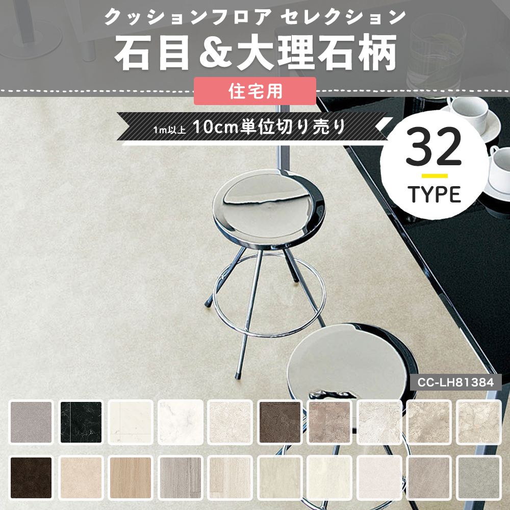 | ■商品名:クッションフロアシート セレクション 石目&大理石 ■サイズ 幅182cm×長さ1m以上(10cm単位) ■1巻の最長サイズ 20m/巻乱 ■機能性 抗菌/防カビ/さらっと床/耐次亜塩素酸 ■素材 表面:塩化ビニール 裏:ビニールまたは不織布 ■生産国 日本 |