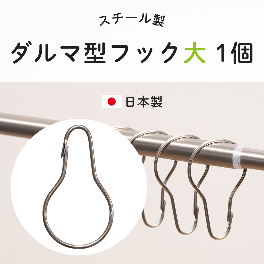 | 表示以上の荷重や急激な荷重をかけないでください。破損の恐れがあります。 シャワーカーテンに使用する場合は、サビに強いステンレスがおすすめです。 ビニールカーテンにご使用の場合はダルマ型フック〈大〉をお使いください。 |