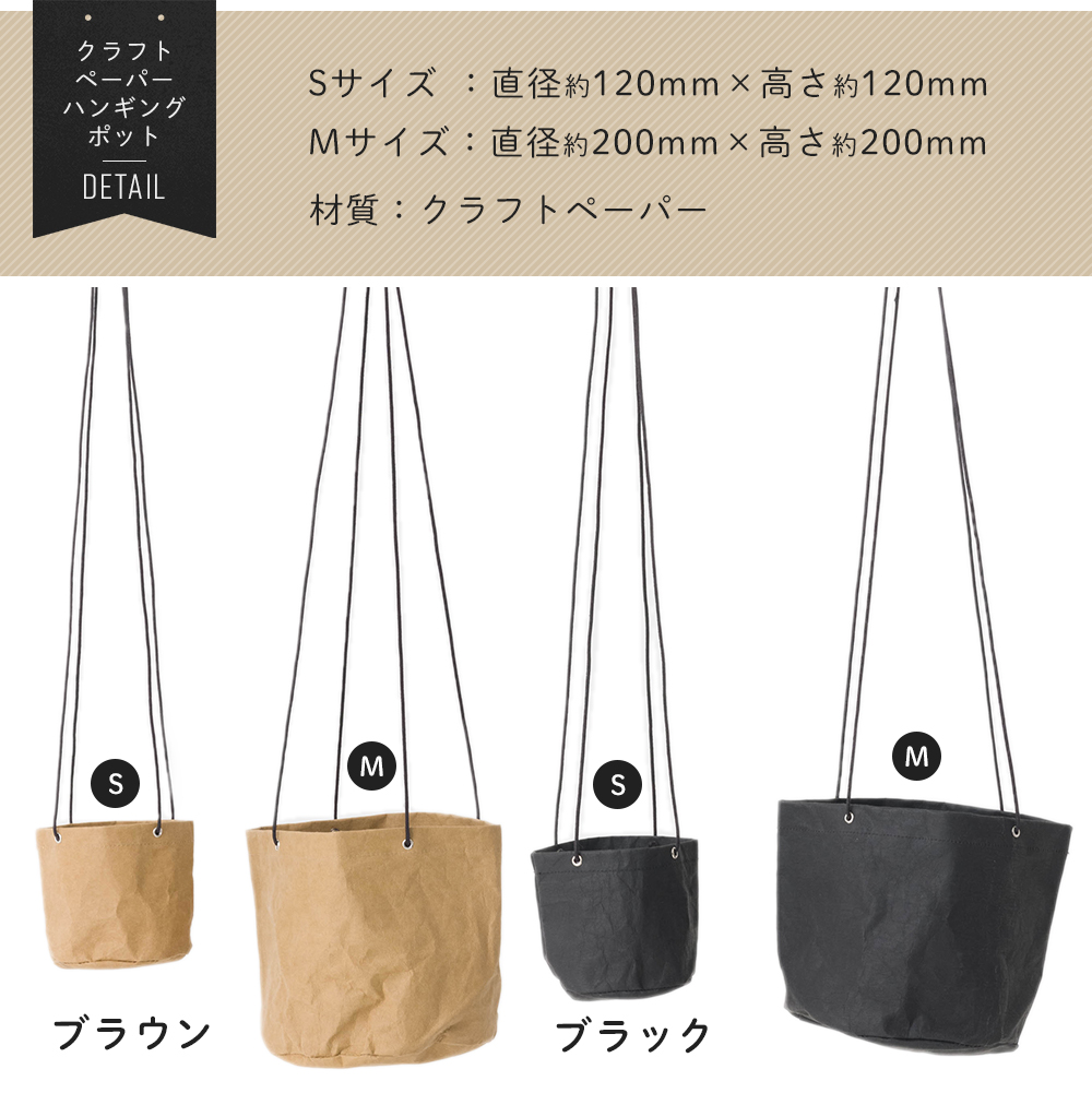 ![]() クラフトペーパーハンギングポット S | ![]() クラフトペーパーハンギングポット M |