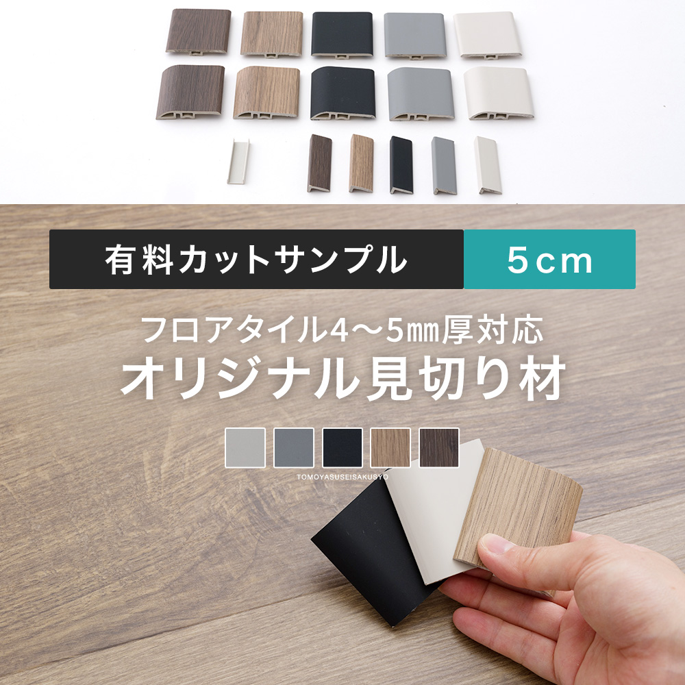 友安オリジナルフロアタイル専用の見切り材が登場!色合わせ、サイズ合わせができる5cmのカットサンプル。