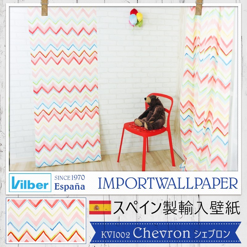 壁紙 ジグザグ ボーダー おしゃれ 輸入壁紙 スペイン Vilber Chevron シェブロン 幅68cm×10m 1本 不織布 フリース C-F-1