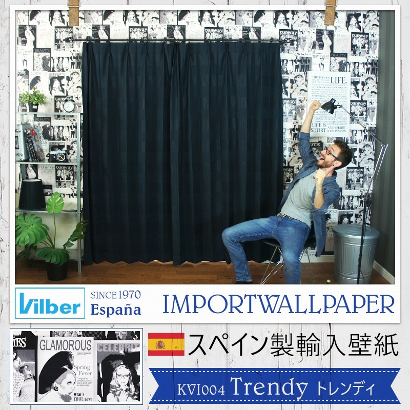 壁紙 ポスター モノクロ おしゃれ 輸入壁紙 スペイン Vilber Trendy トレンディ 幅68cm×10m 1本 不織布 フリース C-F-1