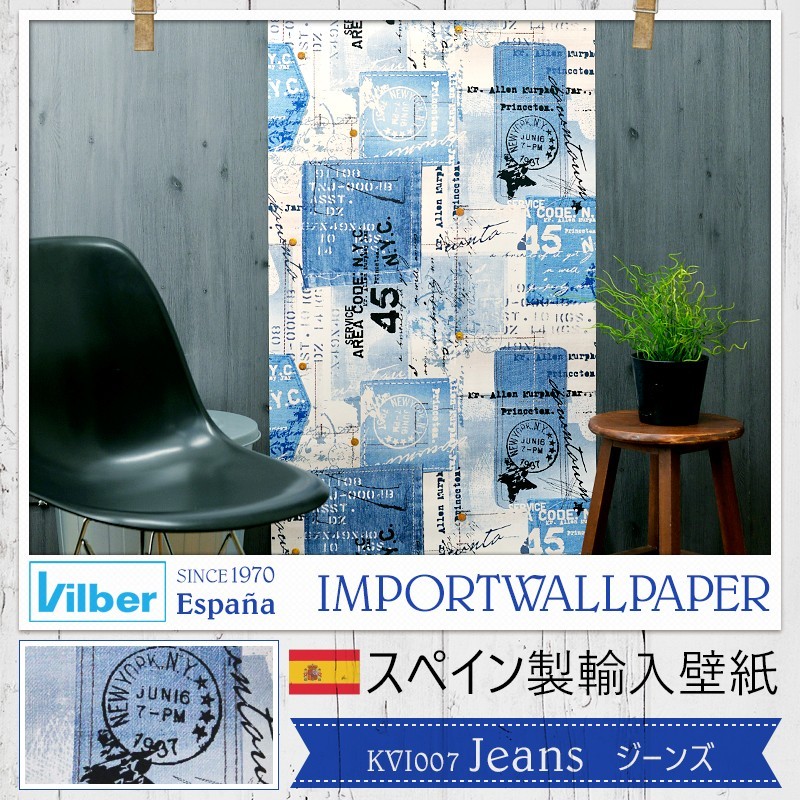 壁紙 デニム おしゃれ 輸入壁紙 スペイン Vilber Jeans ジーンズ 幅68cm×10m 1本 不織布 フリース C-F-1