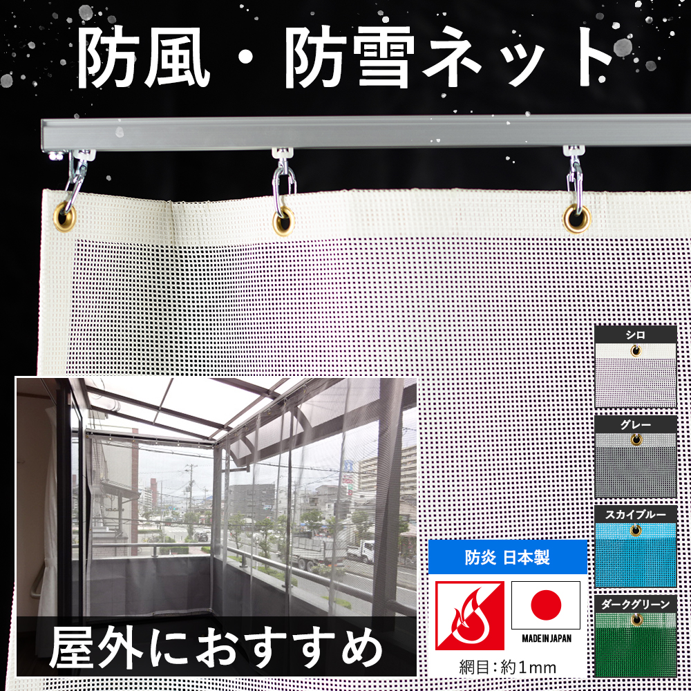 網 ネット ビニールシート 防砂 防塵 防雪 防風 防寒 養生 ペンキ飛散用 吹き込み軽減 風よけ 風除け 雪よけ 雪除け 強風軽減 風雪対策 防風網 カーポート ガレージ 駐車場 屋外 業務用 工場 農業 田畑 店舗 間仕切 目かくし フェンス ホワイト ブラック 白 青 緑 大型 施工 見積り 大阪 安い