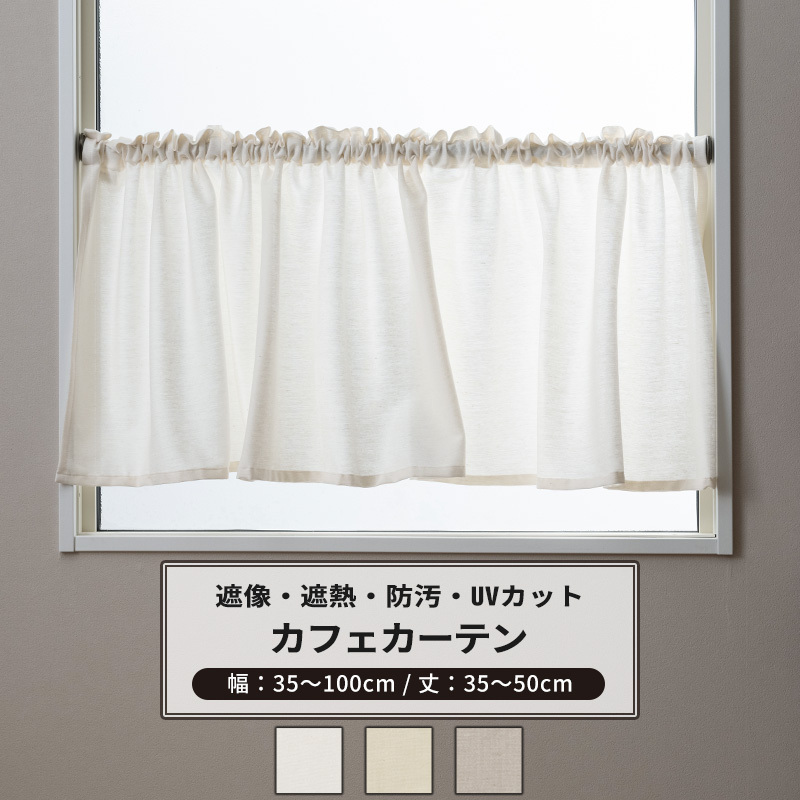 カフェカーテン レース オーダー 遮像 遮熱 防汚 おしゃれ シンプル 無地 リネン風 ベージュ
