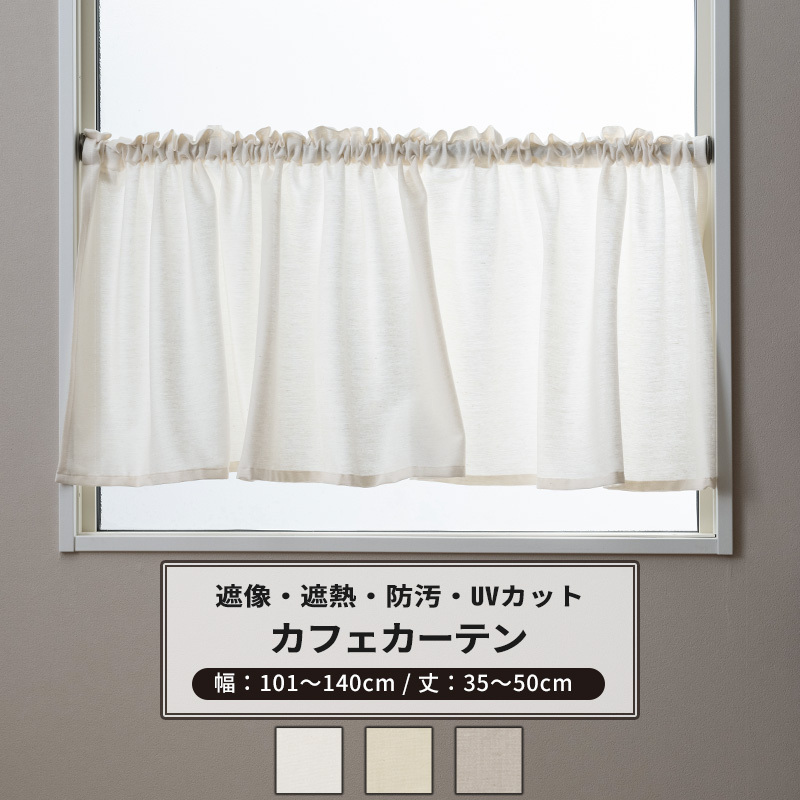 カフェカーテン レース オーダー 遮像 遮熱 防汚 おしゃれ シンプル 無地 リネン風 ベージュ 幅101〜140cm 丈35〜50cm RH264 リーネル 1枚 OKC5 爆買