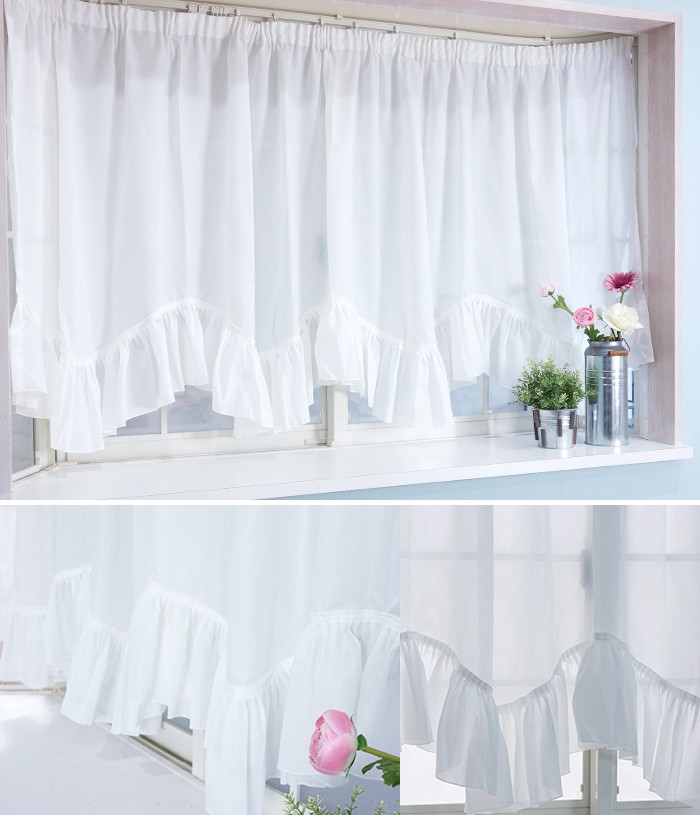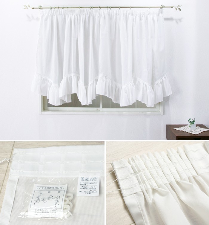 ギャザーを多くとった方が、生地のふんわり感がきれいに映り、外からもお部屋の中が見えにくくなります。