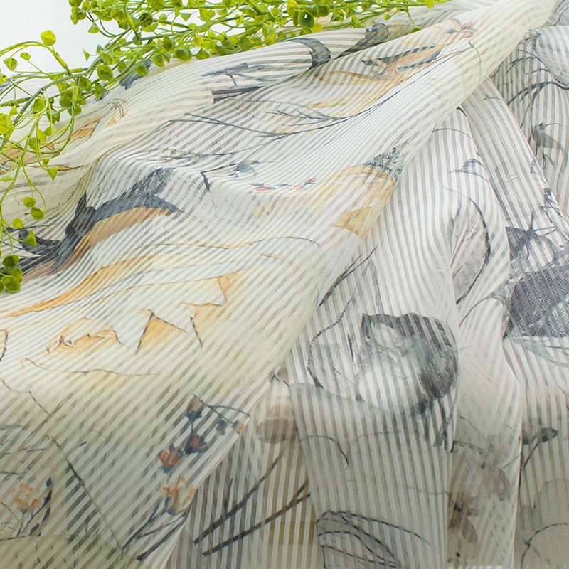 透明感のある繊細なストライプ織りの生地に大人っぽい薔薇プリントのシアーレース。