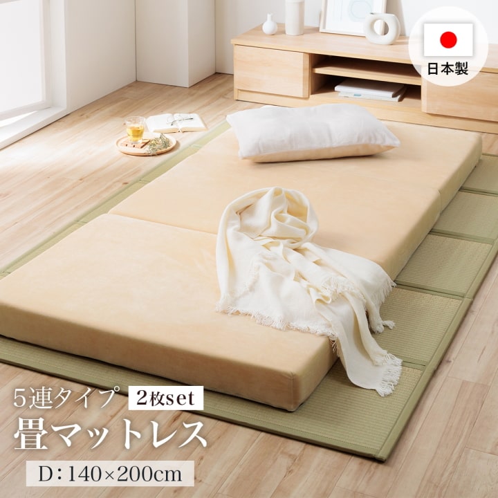 置き畳 2枚組 畳 マット フローリング 畳マットレス ダブル 国産 い草 カビ防止 ユニット畳 夢見畳5連 140×200cm 日本製 折りたたみ マットレス