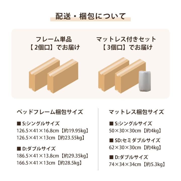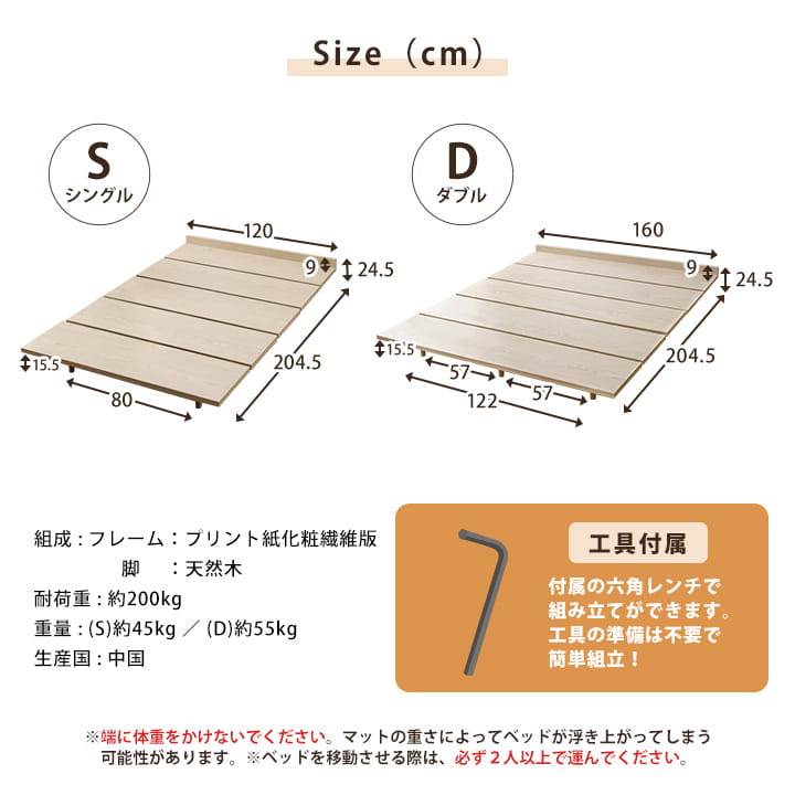 | 【ベッド】 160×204.5×24.5cm(ダブル) 【マットレス】 140×195×10cm(ダブル) |