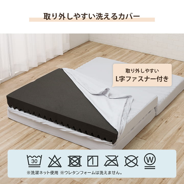 | 【マットレス】 カバー:液温は30℃を限度とし、洗濯機で弱い洗濯ができる ウレタン:洗濯不可 |