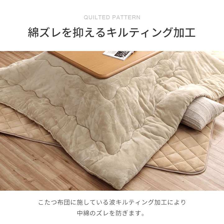 | ■ 大人気のフランシリーズの厚掛けこたつ2点セットです!! ■ 中わたに抗菌防臭加工を施しました。 ■ 側地には柔らかく、肌触りの良いフランネル生地を使用してます。毛足が短いのでゴミや埃が絡みにくいという特長もあります。 ■ 掛布団は、両面使用可能なリバーシブルタイプです。 ■ こたつ台は、高級感のある家具調こたつ台です。 ■ 高さを調節できる継ぎ脚付き。 ■ 中間電源スイッチやコードフック等、あると便利な機能付き。 こたつの特長として 1.省エネルギー、こたつは必要なところだけを暖める省エネルギー暖房器具です。 2.クリーン、こたつは二酸化炭素など有害物質を出さないのでクリーンです。 3.団らんの場、家族や友達が一緒にくつろげる空間、心も体もポッカポカになります。 ※ こたつ敷き布団は別売りです。 ※ 付属の取り扱い説明書を必ずお読みの上ご使用ください。 ※ 本商品は圧縮梱包でのお届けとなります。商品開封後は一切返品を承ることができませんので、あらかじめご了承ください。 ※ こちらの電化製品につきまして、商品の特性上ご注文後の返品・交換はお受け致しかねます。あらかじめご了承ください。 ※ この製品は海外ではご使用になれません。変圧器をご使用いただいた場合でもご使用になれません。 ※ 掲載写真は表記サイズと異なる場合がございます。 ※ こたつ布団は生産時期により、同色の場合でも若干の色の差が生じることがございます。あらかじめご了承ください。 ※ 画面上のカラーはご使用ブラウザやモニターの設定により、実物とは若干異なる場合がございます。あらかじめご了承の上、ご注文をお願いいたします。 |