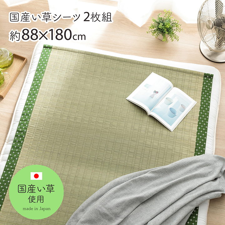 | ■ 熊本県八代産の国産い草を使用したい草シーツ(寝ござ)です。 ■ 国産い草は一本一本が太く、表皮が厚く繊維がキメ細かいので、弾力性があり、耐久性に優れています。 ■ い草には吸湿力・調湿効果があり、汗を吸収してさらっと快適な睡眠をサポートします。 ■ 快眠い草の効能として 1.綿の約2.5倍の吸湿力 2.蒸れにくい。汗による湿気を吸うことにより温度を下げ快適な就寝を促します。 3.汗のにおいを軽減。汗のにおいの元となる化学物質を90%以上抑えます。 などがあります。暑苦しい日本の夏でも汗のジメジメを軽減してくれます。 |