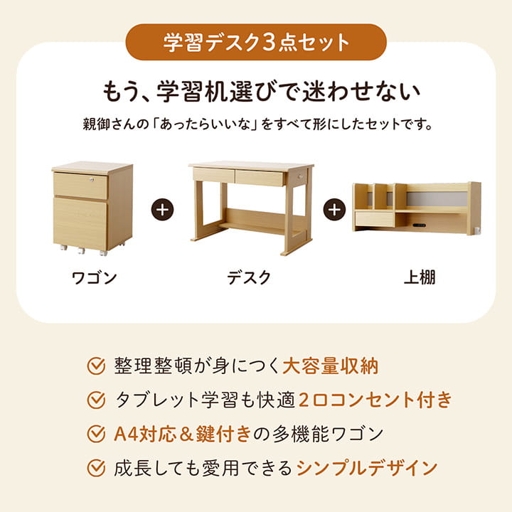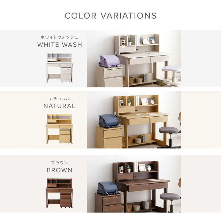■ 学習デスク3点セットです。 ■ お部屋に合わせて選べる3色展開。 |