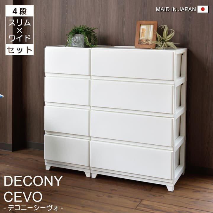 収納ボックス 衣装ケース 4段 引き出し 収納ケース Dシーヴォ 衣装 収納 ケース 4段 チェスト プラスチック おしゃれ スリム×ワイド セット 日本製 白 ブラウン