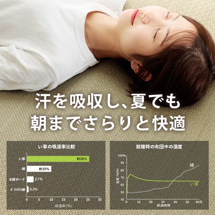 ■ 赤ちゃんや子供はたくさん汗をかきます。い草シーツは汗を吸収してサラリと過ごせる快眠シーツです。