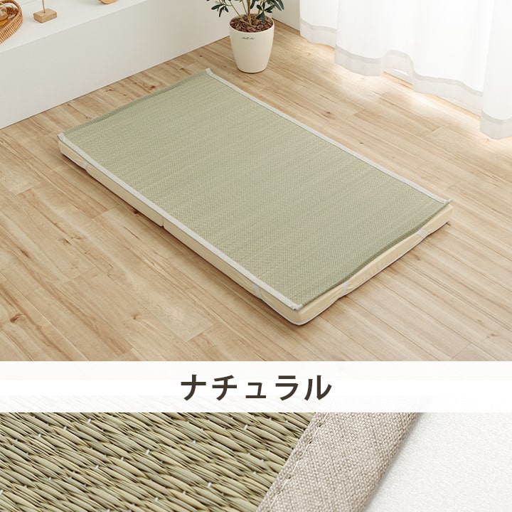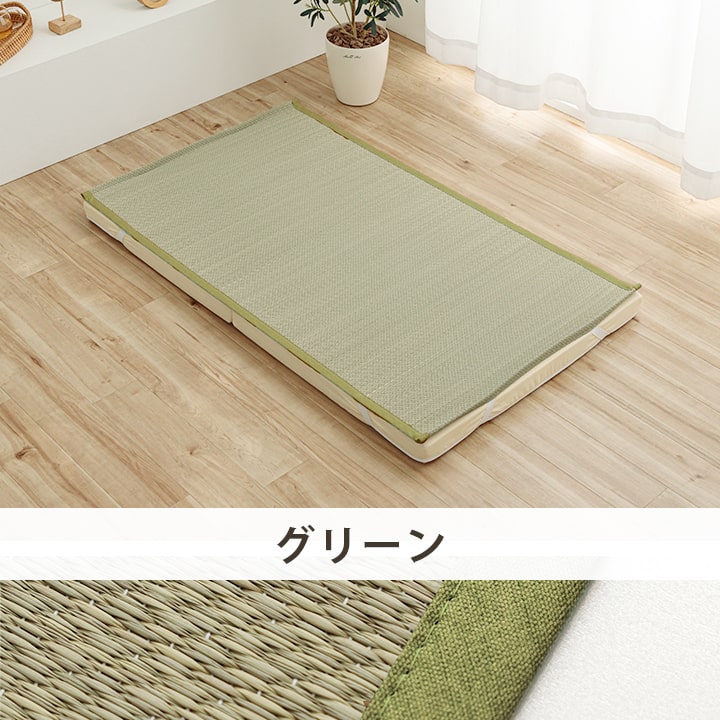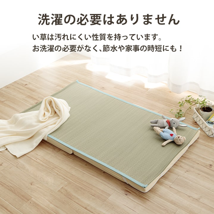 ・通常、い草は草の青さを保ったり、日焼けをしにくくする為に「染土」といわれる泥でい草を染める作業を行います。 その作業をしない無染土い草を使用した商品です。泥染め加工を行ったい草とは違い、素材そのままのい草ですから、粉っぽさもなく、ほこりがたちにくく、肌触りが良いので快適な睡眠をサポートします。