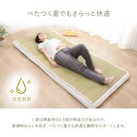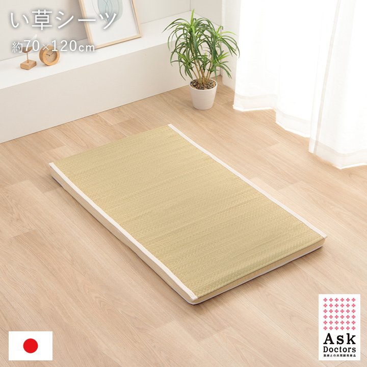 | ■ 医師60名の意見・アイデアから快適な睡眠をサポートするい草寝具をメーカーと共同開発した「アスクドクターズ」シリーズ。長時間、肌に接する寝具だからこそ、自然素材を使い、やわらかな質感にこだわりました。 ■ 国産(九州産)のい草を使用した敷きパッドです。一本一本が太く、表皮が厚く繊維がキメ細かいので弾力性があり、耐久性に優れています。 ■ い草を刈り取った後に行われる、泥染めという工程を省き、素材そのままの無垢のい草を使用しています。粉っぽさがなく、すべすべとした滑らかな肌触りに仕上げました。 ■ 四隅にゴムバンドが付いており、ずれにくくなっています。 ■ い草には吸湿力・調湿効果があり、汗を吸収してさらっと快適な睡眠をサポートします。 ■ 快眠い草の効能として 1.綿の約2.5倍の吸湿力 2.蒸れにくい。汗による湿気を吸うことにより温度を下げ快適な就寝を促します。 3.汗のにおいを軽減。汗のにおいの元となる化学物質を90%以上抑えます。 などがあります。暑苦しい日本の夏でも汗のジメジメを軽減してくれます。 |