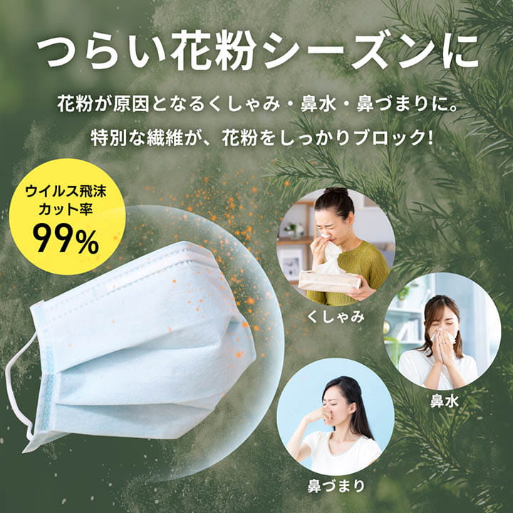 | 【本体】 ポリプロピレン・レーヨン・ポリエステル 【耳部】 ポリウレタン・ポリエステル 【ノーズフィットワイヤー部】 ポリエチレン |