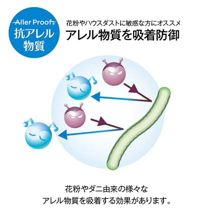 | ※画面上のカラーはご使用ブラウザやモニターの設定により、実物とは若干異なる場合がございます。あらかじめご了承の上、ご注文をお願いいたします。 ※抗菌剤:フタロシアニン ※アレルキャッチャーRはダイワボウホールディングス株式会社の登録商標です。 |