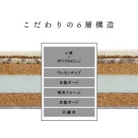 | 組成 | 表地=い草・ポリプピレン 中材=ウレタンチップ0.5cm・木製ボード1cm・発泡フォーム1.5cm・木製ボード1cm 裏地=不織布 |