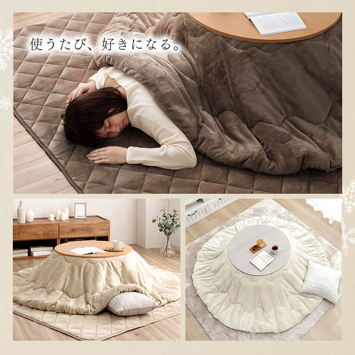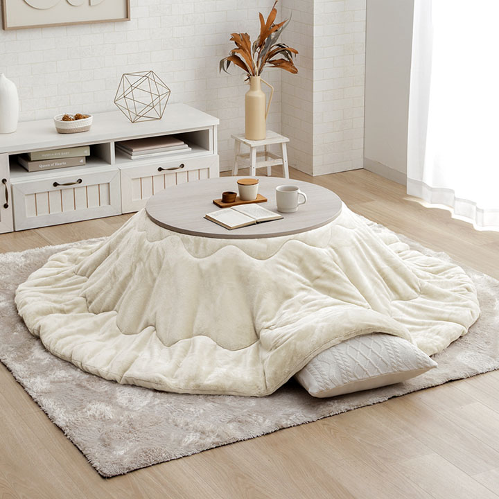 掛布団:約185cm円形 (キルティング加工許容範囲 +5% −3%) こたつ台:70cm円形