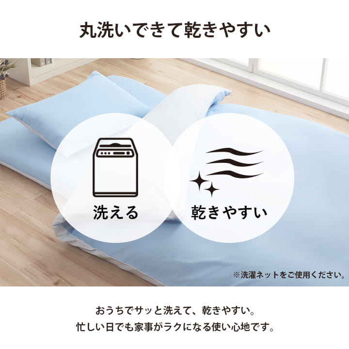 | ■サラッとした肌触りのリバーシブルタイプの枕カバーです。 ■季節を問わず、オールシーズンご使用頂けます。 ■素材が同じで同色の掛け布団カバー、敷き布団カバーも別途取り扱いがありますのでトータルでのコーディネートもお勧めです。 ■ご家庭の洗濯機で洗えます。(洗濯ネット使用) ■乾きやすい仕様になっておりますのでお手軽で清潔にご使用頂けます。 ■本商品はファスナータイプですので、スムーズな出し入れが可能です。 |