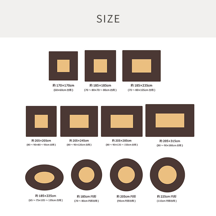 | 掛布団:約225cm円形 / 敷布団:約190×190cm (キルティング加工許容範囲 +5%−3%) |
