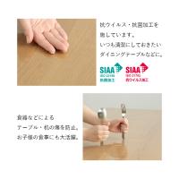 | ※本製品は病気の治療や予防を目的とするものではありません。 ※抗ウイルス・抗菌効果は全てのウイルス・菌に対して発現するものではありません。 ※抗ウイルス・抗菌効果は、実際の使用状況により異なる場合があります。 ※本来の用途以外には使用しないでください。 ※長い間敷いていると家具の塗装剤などにより家具と接している表面が変質する場合がありますので、時々家具から外して空気を通すようにしてください。 ※天然木、及びうるしなどの天然塗り家具・ニス塗装の家具には直接置かないでください。 ※表面を拭く時に、使用できないものがあります。 OK:アルコールが含まれた市販の殺菌・除菌剤、ウェットティッシュなど。 NG:高濃度アルコールタイプ。「アルコール類・水溶性・危険等級2・火気厳禁」と表示されたもの。 ※耐熱温度は約60℃です。熱いやかん・鍋を置く際には、鍋敷きなどをご利用ください。 ※火のそばに置かないでください。 ※ご使用環境によって長さ(巻き)方向に約3%収縮します。長さ方向に収縮した場合、幅方向に若干広がりますのでご注意ください。 |