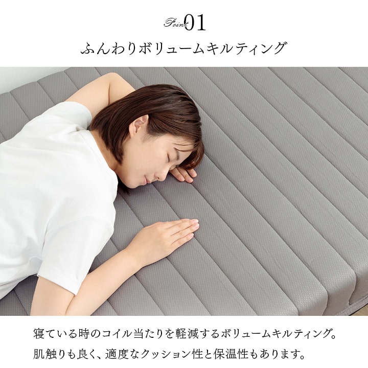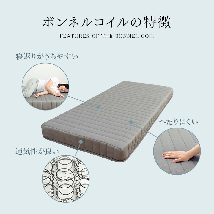 | ■身体を面で支え、硬めの寝心地のボンネルコイルマットレス。 ■届いてすぐに使える脚付きのコイルマットレス。 ■高さ15cmの脚付きで収納スペースやベッド下の通気、お掃除も楽々。 ■ISO9001認定工場で生産した安心の品質。 ■マットレスを清潔に保ち、寝心地をよくするために、ベッドパットのご使用をお薦めします。マットレス自体は布団のように簡単に干したり洗うことができないので、パッドやシーツをこまめに洗うのがポイントです。 ■湿気対策アイテムとして、除湿シートのご使用をお薦めします。除湿シートを使用することで一定の効果がありますが、お部屋の環境や発汗量によって、こまめなお手入れが必要になります。 ■梱包サイズ(約):幅30cm×奥行33cm×高さ97cm ■梱包重量(約):24kg |