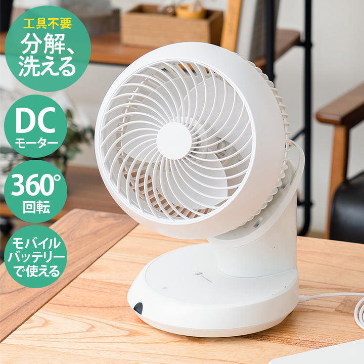 | ■ 消費電力が約11Wと、従来比で最大約70%※の消費電力を削減。省エネDCモーターを使用し、更にUSBケーブルでの給電で消費電力を抑え超省エネ化を実現。年間で最大約2,232円節約と環境にもお財布にも優しい一台です。※ライフオンプロダクツPR-F086 ACモーターサーキュレーターとの比較。 ■ 最大風量で約42.2dBで、閑静な住宅地の昼、図書館内の音と言われている約40dBとほぼ変わらないレベルの静音性を実現。最小風量だと約29dBとなり、静かな動作音で就寝時も気にせずお使いいただけます。 ■ 従来モデルより更に軽量、コンパクトになり利便性が向上。コンパクトなサイズながらも約18畳の広さまで対応し、パーソナルユースで大活躍の1台です。 ■ モバイルバッテリーに繋げば使用できるため、コンセントが無い場所でも使用可能。使用場所の幅が広がります。※モバイルバッテリーは付属しておりません。 ■ 自動首振り機能は左右約60°に加え、3Dで約360°と広範囲に風を届けます。空気の循環だけでなく湿気対策や室内干しにも活躍します。 ■ ファンの前後のガードと羽根は、工具不要ですべて取り外し可能でパーツは水洗い可能。ホコリが付着しやすいガードの隙間や羽根の裏側などが簡単に掃除できるため、いつも清潔にご使用いただけます。 ■ 自動的に風量が1段階ずつ下がる「おやすみモード」と風量が一定に強弱を繰り返す「リズムモード」搭載。体への負担を抑えて就寝中も快適に。 ■ オフタイマーは1時間ごとに8時間までセットできるので就寝時も安心してご使用いただけます。また、オートオフ機能搭載のため、約10時間で電源OFFに。もしもの切り忘れ時にも安心です。 ■ 専用リモコンで遠隔操作が可能。風量やタイマーも、その場でサッと設定できます。また、内蔵されたマグネットで、本体に密着して収納できます。 |
