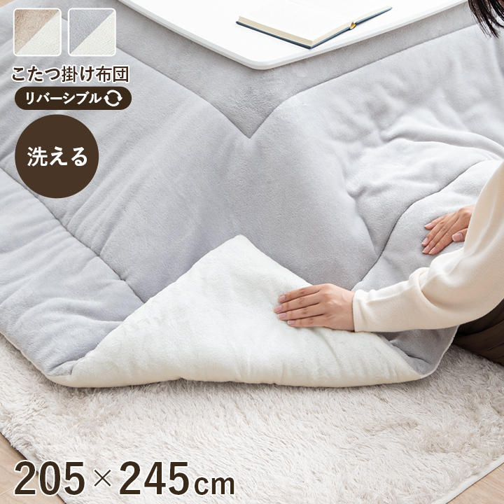 ■リバーシブル仕様のこたつ布団で、両面にふんわりやわらかなフランネル素材を使用しています。 ■洗濯機で洗えるので清潔にご使用できます。(洗濯ネットをご使用ください ※205×245cmは手洗い) ■コンパクトに収納できるので、収納スペースが少ない方にもおすすめです。 |