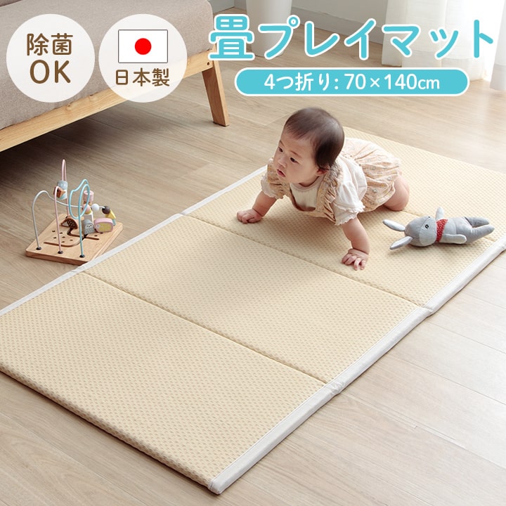 | ■ 畳は昔から子育ての中で、「子供を安心して遊ばせる場所」「子供の好奇心を育む場所」として受け継がれてきました。 移り行く時の中で、生活スタイルが変化した今、子育てを通じて、生活スタイルが変化した今、子育てを通じて、日本の畳文化を伝えるプロジェクト。 それが「畳育」です。 ■ 畳の持つ適度な摩擦感や程よいクッション性は、赤ちゃんの運動意欲を掻き立ててくれます。 そのため赤ちゃんの運動能力の基礎が確保され、歩き始めてからの発育を促進してくれます。 ■ 畳目の凹凸で引っ掻く時の音・感触が、赤ちゃんの脳と五感を刺激。好奇心の芽生えを促します。 ■ 程よいクッションがあるので、お昼寝マットとしてもお使いいただけます。 ■ 表地には耐久性に優れているポリプロピレン素材を使用しているので、おもちゃ等を引っ掛けても傷がつきにくい素材です。 また、汚れにも強く、万が一汚れても簡単に拭き取ることができます。 ■ ポリプロピレン素材は、カビが発生しにくい素材のためカビを食すダニも寄り付きにくく、お子様にも安心のやさしい素材です。 ■ シュッと除菌スプレーでのお手入れOK!大切なお子様が触れるものなので、いつでも清潔な状態を保つことができます。 ■ 中材にウレタンを使用しているので、程よいクッション性があり、お子様が転倒しても安心! ■ 折りたためるので使わない際はコンパクトに収納可能。また軽量(約2.2kg)なので持ち運びもらくらくです。 ■ インテリアを邪魔しないシンプルなデザインに、お子さんが遊びたくなるようなカラーに仕上げました。 ■ 日本の工場で生地を織り上げ、職人が一枚ずつ丁寧に縫製しています。 |
